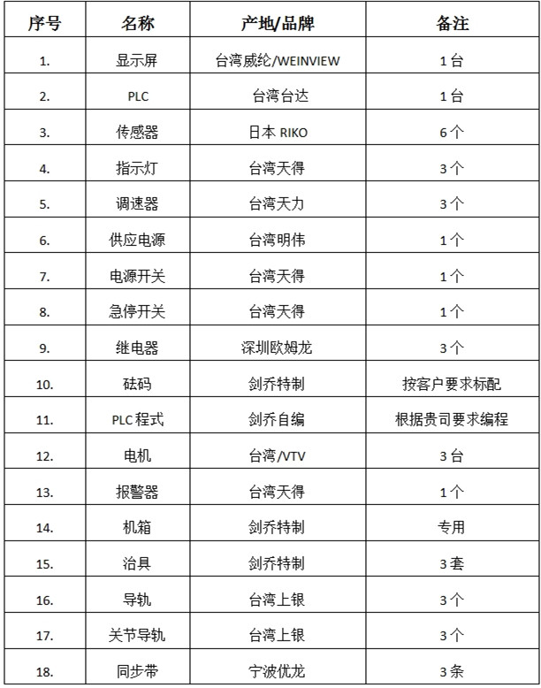 產(chǎn)品型號:JQ-887 品牌:劍 喬 用途:一、本機概述; 本機機械結構:采用臺灣變頻調(diào)速電機凸輪結構配合日本THK精密線性滑軌完成線性上下動作,電器控制部分:采用臺灣威倫觸摸屏+臺灣臺達控制器(PLC).可對計算機、手