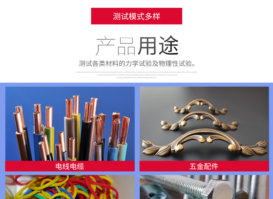 產(chǎn)品型號:JQ-8750 品牌:劍 喬 用途:本系列機廣泛用于各類五金、金屬、塑膠、橡膠料、紙品、包裝、鞋類、皮革、服裝、紡織、建材、絕緣體、電線、電纜、端子等各類材料。測試其拉伸、撕裂、剝離、抗壓、彎曲、抗剪切、定