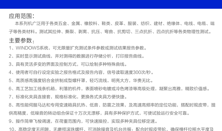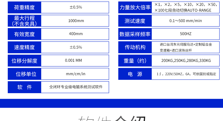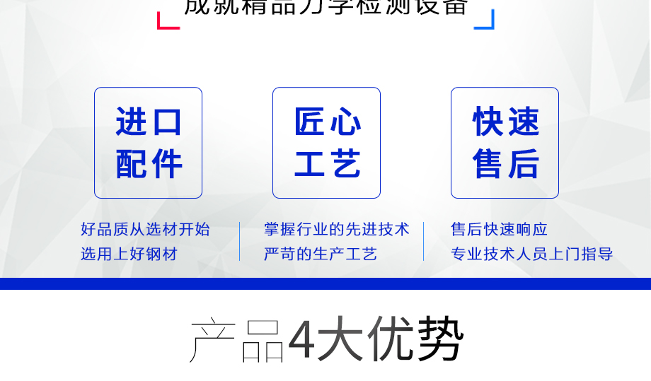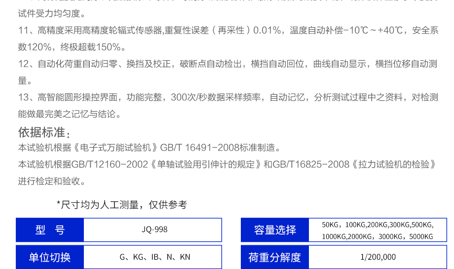 產(chǎn)品型號(hào):JQ-998(高端定制款) 品牌:劍 喬 用途:高端雙柱拉力機(jī)主要測試原物料、成品、半成品的物理特性,可做抗拉力測試、抗壓力測試、抗彎測試,取得伸長量、伸長率、應(yīng)力、應(yīng)變等測試結(jié)果及測試資料。